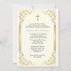 Este belo trabalho de arte religioso retrata a Virgem Maria em oração serena, vestindo vestes fluentes adornados com a trim de ouro, em pé dentro de um arco de ouro ornamentado cercado por lírios brancos puros simbolizando pureza e graça divina. Um radiante halo ouro com estrelas circunda sua cabeça enquanto ela se posiciona com as mãos unidas em devoção pacífica, criando uma peça central espiritual perfeita para um convite batismo que transmita proteção materna e benção celestial para esse sacramento sagrado.