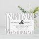 Convite para casamento de GAY branco e preto moderno. faixas geométricas brancas na moda pretas.