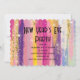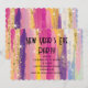 Convite de festa de Ano Novo com um design de fundo abstrato. Listras vibrantes em cores fortes e pastéis. Cores rosa, azul, roxo e amarelo combinadas com brilho dourado falso sobreposto.