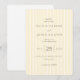 Este convite de casamento elegante apresenta um layout vertical com uma paleta de cores pastéis suaves em tons de creme e amarelo claro. O design inclui listras diagonais sutis que adicionam textura e profundidade, criando um visual sofisticado. A tipografia é refinada e clássica, usando uma fonte serifada maiúscula para clareza e formalidade, com a conjunção "e" em uma escrita cursiva estilosa. Perfeito para uma reunião formal, este convite exala calor e celebração, tornando-o ideal para casais que buscam uma estética atemporal e graciosa para o seu dia especial.