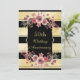Convite Listras Douradas Elegantes Floral Aquarela Bodas d