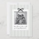 Procurando uma maneira doce e significativa de pedir aos entes queridos para serem padrinhos do seu bebê? Este design de cartão é a maneira perfeita de fazer a pergunta! Seja você pedindo a um membro da família ou a amigos próximos, este modelo ajuda a criar um momento emocionante que eles guardarão para sempre. Este design apresenta um fundo listrado em verde sálvia e um laço preto, juntamente com espaço para uma foto de sua escolha. Você pode editar a cor das listras, do laço e de todo o texto neste design.