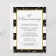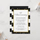 Este convite de aniversário elegante e moderno apresenta um fundo listrado em preto e branco ousado com pontos dourados espalhados ao longo da borda. Personalize a cor do fundo para combinar com o tema do seu evento. Visite nossa Coleção 'Listras Espelhadas' para ver todos os produtos correspondentes.