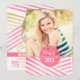 Turma de 2014. Convite de formatura elegante com duas fotos de formandos. Mosaico de listras de aquarela rosa e detalhes de brilho dourado falso. ***POR FAVOR, NOTE que se você alterar a fonte ou o tamanho da fonte, isso pode alterar a impressão do seu convite. Ele será impresso da forma como você o vê no seu monitor. Eu não verei seu cartão após o pedido, e a Zazzle NÃO editará nada (erros de digitação, alinhamento, etc.). A foto é exibida apenas como modelo.