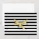 Convite de listras pretas e brancas e avião dourado. Ótima decoração para uma nursery ou quarto de crianças. Confira toda a coleção.