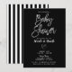 Convite Listras Pretas e Brancas Chá de Bebê Prata Chique