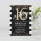 Esses Convites de Listras Pretas e Brancas com Dourado são perfeitos para qualquer aniversário! Altere a idade para homenagear o seu homenageado no seu dia especial.