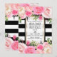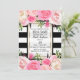 Convite Listras Pretas e Brancas Dourado Rosa Flores Chá d