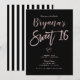 Convite Listras Pretas e Brancas Rosa Dourado Rosa Chic Fe