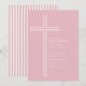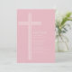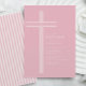 Celebre o dia especial da sua filha com este convite de batismo elegante com listras rosa e cruz. Com uma cruz branca limpa em um fundo rosa suave e listras clássicas coordenadas no verso, este design combina a tradição eclesiástica atemporal com um toque doce e moderno.
