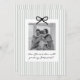 Procurando uma maneira doce e significativa de pedir aos seus entes queridos para serem padrinhos do seu bebê? Este design de cartão é a maneira perfeita de fazer a pergunta! Seja você pedindo a um membro da família ou a amigos próximos, este modelo ajuda a criar um momento emocionante que eles guardarão para sempre. Este design apresenta um fundo listrado em verde sage e um laço preto, além de espaço para uma foto de sua escolha. Você pode editar a cor das listras, do laço e de todo o texto neste design.