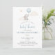 This adorable baby shower invitation features a hand-painted elephant and balloon nestled within the clouds. The calligraphy and serif fonts complement each other and add to the overall design.