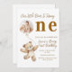 Celebrate your little bear’s big milestone with this adorable first birthday invitation featuring a soft teddy bear theme, elegant script typography, and a personalized photo inside a round frame. Perfect for baby birthday parties, bear-themed celebrations, kids events, and memorable keepsakes. Customize with name, date, time, location, and RSVP details to create a warm and charming invitation your guests will love.