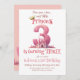 Celebre o terceiro aniversário da sua princesa com este encantador convite para castelos cor-de-rosa! Apresentando um elegante número "3" e a doce mensagem, "Nossa Pequena Princesa está se tornando TRÊS", este convite captura a magia de seu dia especial. Perfeito para uma festa de aniversário de temas reais, este charmoso design dá um tom caprichoso para a família e os amigos. Personalize com detalhes da festa e prepare-se para um dia de alegria e ajustado maravilhoso para uma princesa!