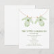 St. Patrick's baby shower theme featuring vintage inspired illustration of two green shamrock baby bodysuits hanging from clothesline.