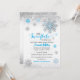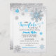 Convite Little Snow Flake Blue Silver Glittery Baby Shower
