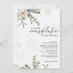 This beautifully illustrated baby shower invite features a peaceful winter scene with delicate white and silver snowflakes, evergreen foliage, and soft florals in muted taupe, sage, beige, and ivory. The soft color palette and natural elements give this design a warm, rustic winter vibe, ideal for celebrating a baby on the way during the holiday or snowy season.