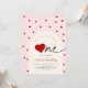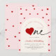 Our little sweetheart 1st birthday invitation. Perfect for a heart theme birthday celebration. Cute girly design in red and blush pink. Features trendy modern typography script font. Simple minimalist elegant first girls bday celebration with a touch of boho chic. Personalize with your own details. Printed Zazzle invitations and/or instant download digital printable template.