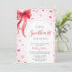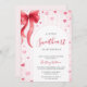 This design features a Valentines themed baby shower "A Little Sweetheart Is On The Way" with a red glittery ribbon and water coloured pastel pink love hearts. Perfect for a baby girl baby shower theme.