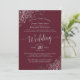 Tempos desesperados exigem medidas desesperadas! Devido à atual emergência de saúde pública, casais estão encontrando formas criativas de celebrar seus casamentos. Este belo convite convidará seus convidados a comparecer virtualmente a um livestream do seu casamento. Ele apresenta um simples, mas elegante design com a caligrafia de cinza de luz antiga em um fundo vermelho de tijolo ou burgundy profundo e um filigre de folha fina de cinza prateada nos cantos. Porque o amor persiste!