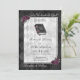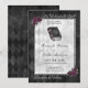 Um Feitiço Inquebrantável é o ditado nesta linda e sombria convite de casamento com um livro de feitiços e rosas roxas escuras. As cores são preto, roxo, branco e cinza. O fundo tem um padrão de diamante preto e flores no livro de feitiços. Perfeito para um casamento gótico ou de Halloween.