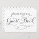 Um lindo sinal de livro de visitas com letra caligrafada preta dainty e padrão de bolinhas. Este cartão plano será perfeito para casamentos e eventos semelhantes. Disponível em outras cores.