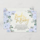 Livros de chá de fraldas para Bebê Traga um Livro Solicitação para Inserir Modelos de Cartão - Letras Douradas Elegantes com Tipografia e Vintage Light Blue Lavanda Color Watercolor Floral. Todo estilo de texto, cores, tamanhos podem ser modificados para ajustado das suas necessidades!