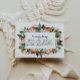 Este livro para cartão de bebê apresenta cor d'água, flores laranja e fonte cursiva divertida. Este cartão tem uma redação perfeitamente editável.