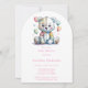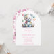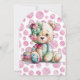 Esta ilustração contém um Ursinho de pelúcia fofo e caprichoso com um remendo de patchwork floral costurado à mão em aquarela, com um balão de patchwork em um fundo branco simples. Convites e materiais para festa correspondentes estão disponíveis nesta coleção.