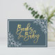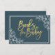 Livros de Chás de fraldas para bebê Traga um livro Solicitações de inserção Modelos de cartão - Script manuscrito elegante e Quadro de gráfico botânico branco em fundo de papel azul. Todo estilo de texto, cores, tamanhos podem ser modificados para ajustado das suas necessidades!