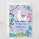Este convite de fiesta de chá de fraldas bonito apresenta um fundo azul claro com lama/alpaca, pássaros, cacto, arco-íris, montanhas e flores. O verso apresenta um fundo azul com padrões florais. Personalize-o para as suas necessidades. Você pode encontrar produtos correspondentes na minha loja.