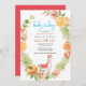 Llama Mama Citrus Floral Greenery Baby Boy Invitation - Comemore a chegada do seu bebê precioso com este adorável e fofo 'Chá de fraldas Invitation' com uma feliz mãe de lama cercada por verde e folhagem cor de laranja, rosa e vermelha. O título apresenta caligrafia azul. O fundo apresenta um padrão laranja brilhante. Todos os textos estão pré-organizados para que você personalize fácil e rapidamente com os detalhes do seu chá de fraldas.