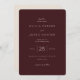 This elegant wedding invitation features a sophisticated maroon background with clean, modern typography that exudes timeless charm. The minimalist design focuses on the text, creating an understated yet refined look perfect for a classic celebration. With its simple and graceful layout, it sets a mood of warmth and sophistication, making it ideal for couples who appreciate elegance in their special moments. Customize this design to personalize your big day, ensuring every detail reflects your unique style.
