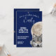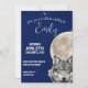 Este convite de festas personalizado apresenta um tema majestoso do lobo. O fundo apresenta um céu azul escuro, noite com estrelas cintilantes. Uma ilustração realista de estilo de uma grande lua de cheio é impressa com uma cabeça de lobo no canto inferior direito.