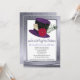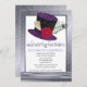Este doce 16 é para o tema louco do tea party do Hatter e o fundo cinzento delicado da cor damasco das características com o chapéu alto louco do Hatter com uma pena do pavão e uma flor.  Muito chique e elegante.  Verificação para fora nosso cargo do blogue para ideias loucas do tea party do doce 16 do Hatter em www.weddingbydesigns.com personalizado facilmente com sua informação. :: OS ENVELOPES INCLUÍRAM::