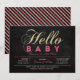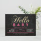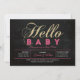 Celebre um dia especial para o seu querido com este convite de chá de bebê moderno! Este design apresenta uma tipografia simples, mas elegante "Olá Bebê" com textura de brilho rosa quente e dourado.