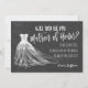 Você será meu cartão de dama de honra com um vestido de noiva desenhado à mão em um fundo de lousa.