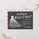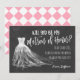 Você será minha dama de honra cartão com um vestido de noiva desenhado à mão contra um fundo de lousa.