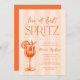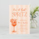 Raise a glass to the bride-to-be with this retro-inspired “Love at First Spritz” bridal shower invitation by Redwood & Vine Design Co. Featuring a hand-drawn Aperol spritz illustration and playful wavy border on a peachy-orange striped background, this design is perfect for summer celebrations and Italian cocktail lovers. The back of the card includes additional customizable fields for shower details such as recipe requests and registry information, plus a space for a scannable QR code for easy registry access. Whether you're hosting a chic spritz bar or a backyard soirée, this vibrant invitation brings charm and personality to your bridal shower planning.