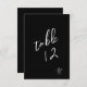 Texto manuscrito elegante e sotaques de pincel são usados para criar as peças deste lindo e moderno pacote de casamento. O cartão de número da mesa de casamento mostrado aqui também mostra suas iniciais e data de casamento em branco a preto. Adicione facilmente os números de tabela usando o modelo fornecido. Procure ID940 para ver outras peças e opções de cor para este conjunto.