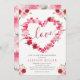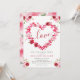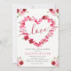 Belo Chá de panela de amor, com um coração floral rosa e vermelho enquadrado com bouquets de rosa. Sacudir o nosso doce convite para ver uma coordenação floral.
