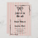 Sweet, playful, and a little nostalgic — this “Love Is in the Air” bridal shower invite brings a fun retro touch to your celebration. The hand-drawn bow, wavy borders, and soft blush stripes set an upbeat tone that suits everything from cozy at-home showers to brunch gatherings.
