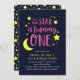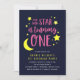 Convite Lua Amarela rosa e primeiro aniversario de estrela