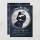 Bonito lua de eclipse por cheio de aquarela Celestial e estrelas Salvem os convites de casamento de Data com uma foto do casal. Excelente para um casamento noturno ou um casamento perto de uma lua de cheio. Fundo de cor azul-d'água escuro. Solicite itens correspondentes, se necessário.