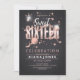 Você pode dar à sua filha a lua e as estrelas (figurativamente, pelo menos!) com esta divertida celebração convidando em tons espumantes de ouro rosa num fundo de carvão. Estrelas e planetas são borrifados liberalmente sobre uma fita rosa dourada que se estende através da tipografia criativa de 'Doce Dezesseis'. Adicione facilmente os detalhes do evento usando o modelo fornecido. Um convite exclusivo e alegre, adaptável a qualquer evento. Procure ID788 para ver outros produtos e opções de cores com este design de fundo de vidro.