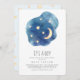 Esta lua e as estrelas é um convite para chás de fraldas é perfeito para um simples chá de fraldas. A design branca moderna apresenta uma forma de nuvem azul-aquática marinho com uma lua e estrelas amarelas com um quarto de lua amarela.
