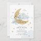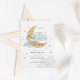 Um design lúdico, mas elegante, com um roteiro de na moda caligrafia, emparelhado de estrelas desenhadas à mão, nuvens e uma lua crescente em cores na moda. Perfeito para temas de lua e chás de fraldas estelares como "sobre a lua", "relinha cintilante" e "amado à lua e de volta". Visite o compro para ver mais design assim.