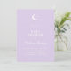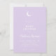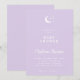 Inverno Lilac Moon and Stars Chá de fraldas Convite com mínima lua e design estelar em um pastel suave de inverno com um roteiro simples e elegante