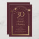 A Celestial Red Dourada Sun Moon Astronomy aniversário de 30 anos Invirs apresenta um elegante sol dourado, lua e estrelas com um quadro de ouro sobre um fundo cor-de-rosa profundo. Dentro é a sua informação de convite de 30 anos. Personalize editando o texto nas caixas de texto. Projetado para você pelo Evco Studio www.zazzle.com/store/evcostudio