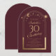 A Celestial Red Dourada Sun Moon Astronomy aniversário de 30 anos Invirs apresenta um elegante sol dourado, lua e estrelas com um quadro de ouro sobre um fundo cor-de-rosa profundo. Dentro é a sua informação de convite de 30 anos. Personalize editando o texto nas caixas de texto. Projetado para você pelo Evco Studio www.zazzle.com/store/evcostudio